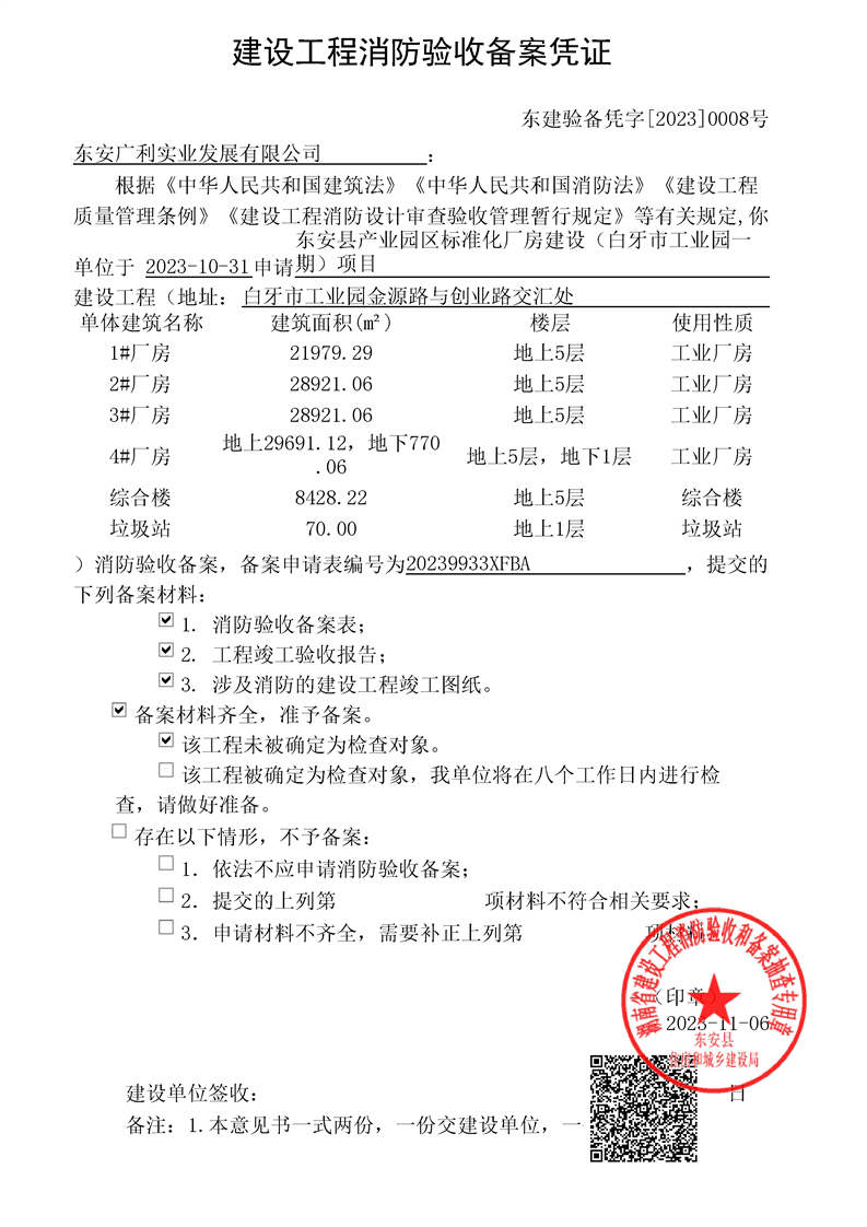 ray雷竞技官网入口产业园区标准化厂房建设(白牙市工业园一期)项目消防验收备案结果公示