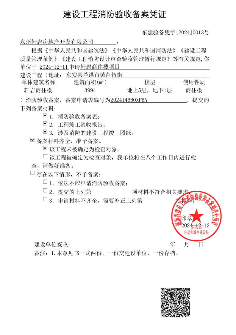 轩岩商住楼项目消防验收备案结果公示
