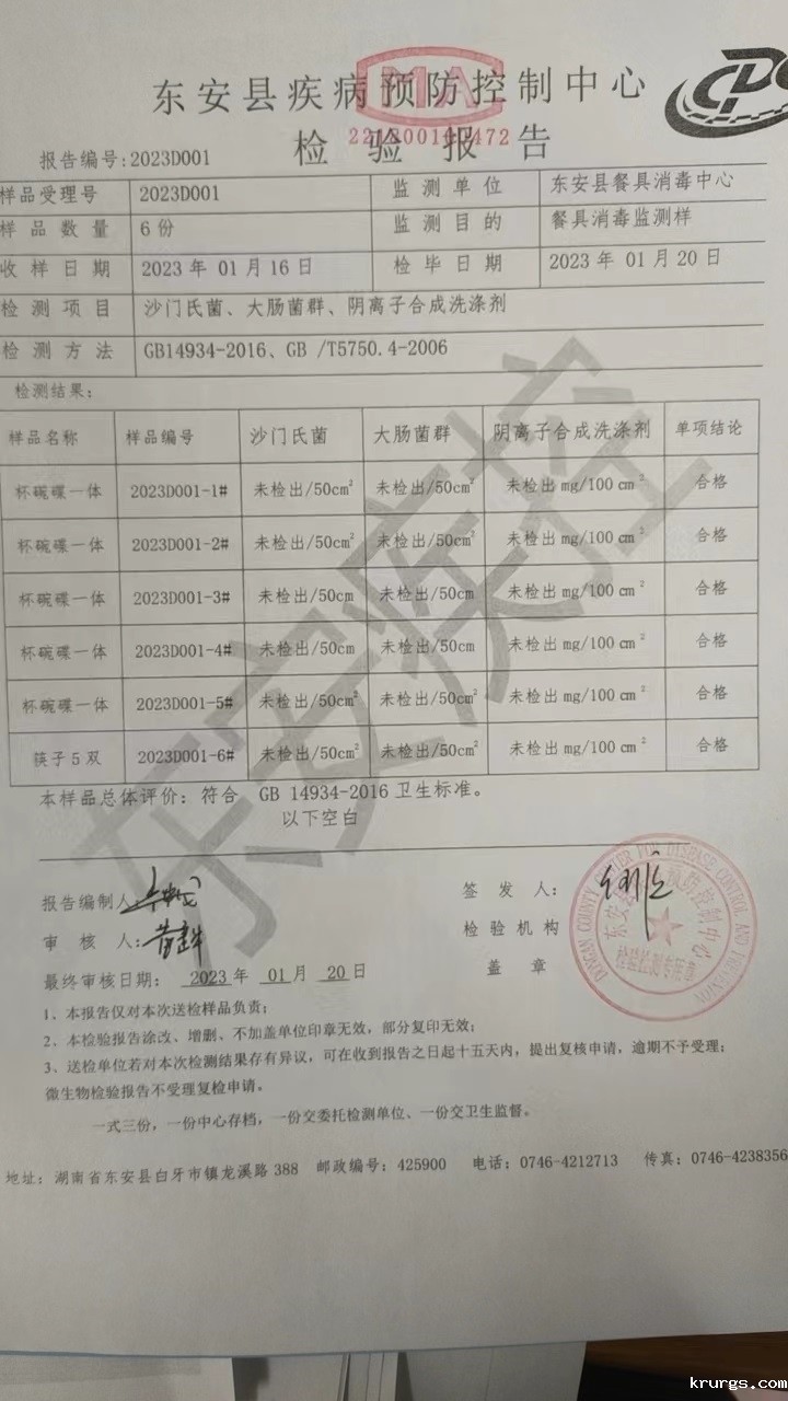 ray雷竞技官网入口第1季度餐具消毒监测报吿